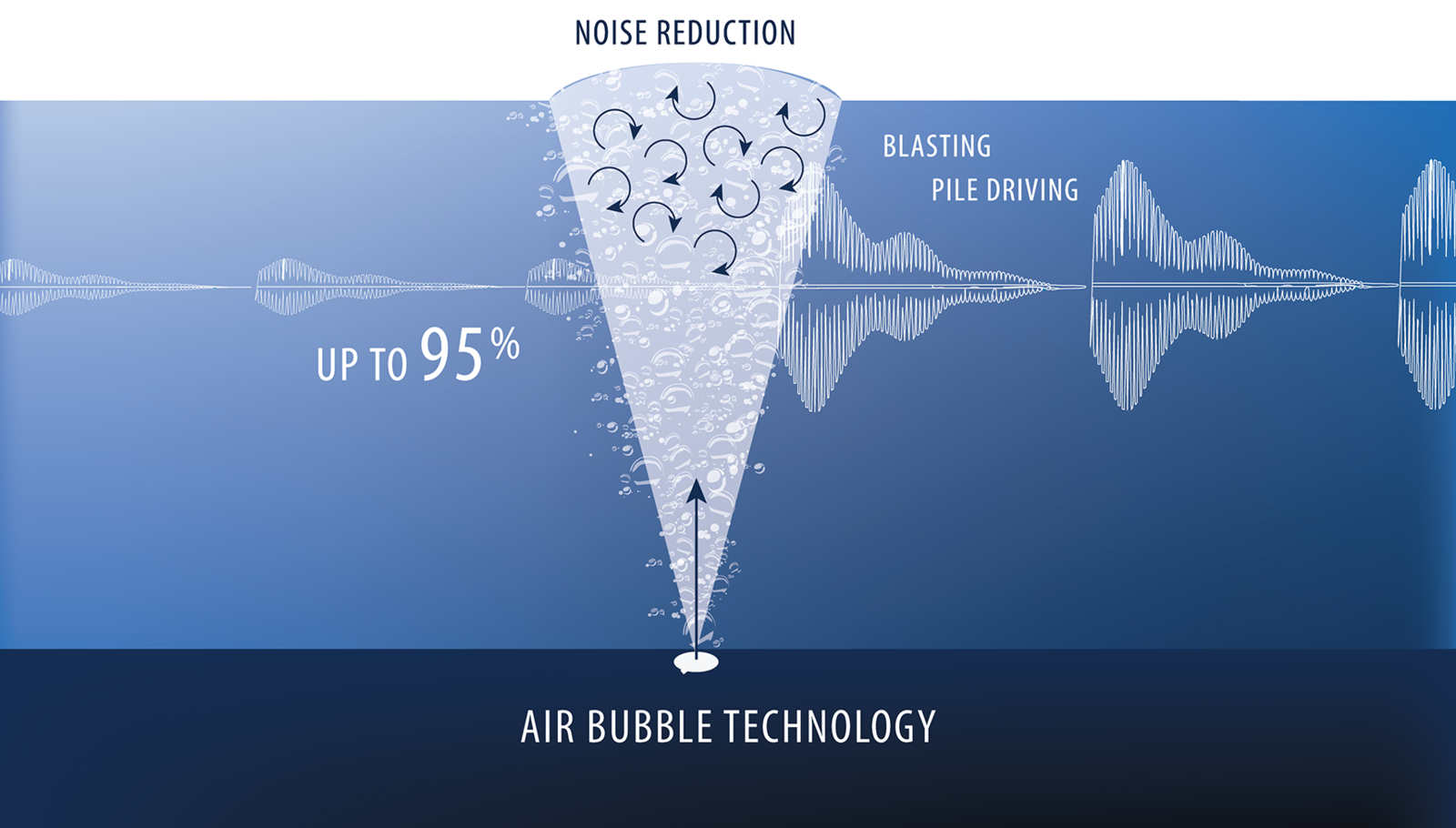 Anyone can blow bubbles – few can generate a bubble curtain. Bubble curtain technology is used to mitigate noise in the underwater environment. Our Bubble curtains can reduce underwater noise by up to 95%.